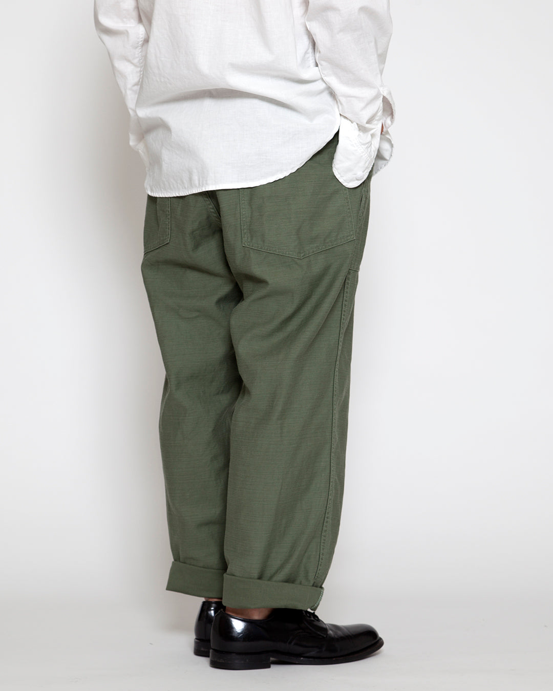 USミリタリーのユーティリティトラウザーズに使われていた生地を参考に作られたバックサテン。
